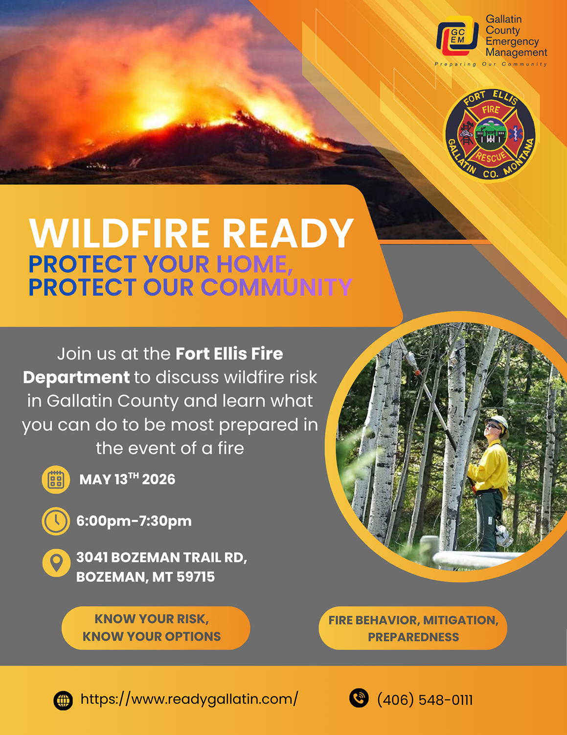 Wildfire Ready Event MAY 13 for Fort Ellis Homeowners